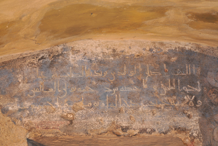 Walid Ibn Yazid, or Walid II, was an Umayyad caliph who reigned for a little over a year, from February 743 to April 744. The inscription, however, is missing the typical expressions used for Umayyad caliphs (“God’s servant,” “Prince of the Believers”), indicating that it was painted when Walid was still a prince, during the reign of Hisham bin Abd el-Malik (723–743).