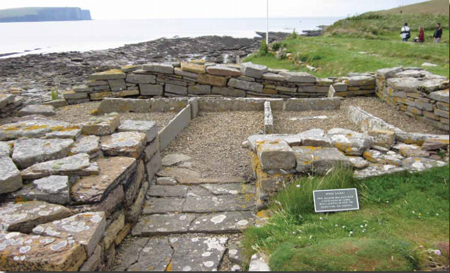 The Dineleys recently examined a stone-built installation at Cubbie Roo's Castle, on the island of Wyre, Orkney — a Viking stronghold of the 12th century AD. The Dineleys theorize that the structure would have made for an excellent mash oven, with the cauldron sitting above the fire. And in fact, they say it's the best example of a Viking brew house in Britain. They room is well equipped with substantial drains, it has a stone shelf for the storage vats, and a drain beneath.