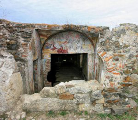 A sólo doce kilómetros de Cáceres, en la carretera de Badajoz, se encuentran las ruinas de la ermita de San Jorge, un curioso edificio del siglo XIV o XV que tiene frescos atribuidos a Juan de Ribera.
