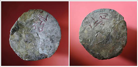 IMAGEN: Fotografía facilitada por el Cabildo de Gran Canaria del anverso (i) y reverso (d) de la moneda recuperada a lo largo de los últimos años en la Cueva Pintada de Gáldar, uno de los yacimientos prehispánicos más importantes del archipiélago, que es aragonesa, como ya se sospechaba hace tiempo, porque en una de sus caras se adivina la cruz patriarcal. EFE