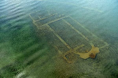 Les fondations de l'église sont visibles sous l'eau à 1,5 à deux mètres de profondeur. On estime que la structure s'est effondrée suite à un tremblement de terre.