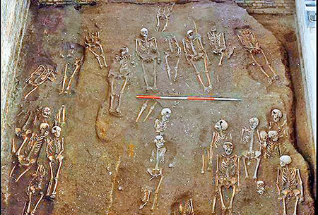 Los trabajos realizados por un equipo de la unidad de arqueología de la Universidad de Cambridge, adelantaron que se trata de un entierro de unas mil 300 personas, que fueron colocados en perfectas filas.