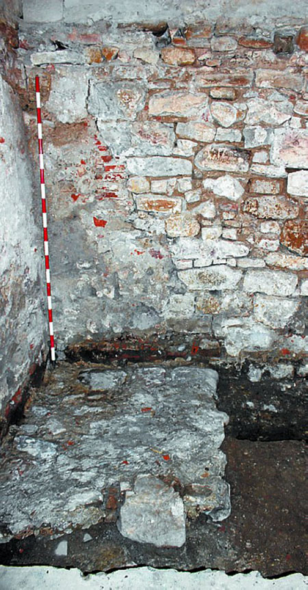 La Fundación Arkeolan, bajo la dirección de Pía Alkain, ha llevado a cabo esta misma semana una intervención de evaluación arqueológica. La estructura se localiza en la planta semisótano del edificio, mediante la apertura de un sondeo de 2x2 metros se ha registrado un muro con una anchura de 1'20 metros y una longitud de 2 metros,conservándose un alzado de 1 metro. Será necesario esperar a que se inicien los trabajos de excavación de la nueva cimentación del edificio para poder ver la muralla en todo su desarrollo.
