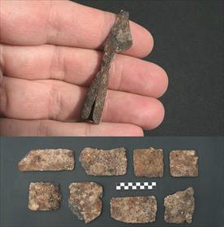 Pero si importante ha sido este hallazgo, no lo ha sido menos la aparición de varios elementos de cultura material inesperados, bien por lo poco frecuente de la tipología del material hallado o bien por lo insólito del contexto en el que se han producido.
