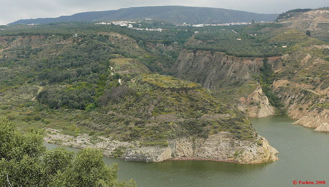 Una situación que se mantenía en 2008 cuando hicimos la siguiente fotografía desde el suroeste, al otro lado del pantano de Béznar, y en la que aún se aprecian los restos del cortijo arruinado que señalaba la imagen anterior, a la izquierda de la Meseta: