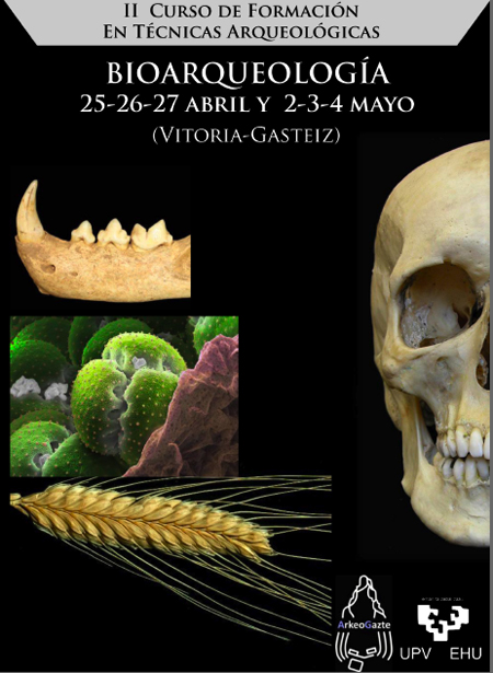 Arkeogazte invita a los interesados a participar en este curso, que se celebrará en Vitoria-Gasteiz entre los días 25,26 y 27 de abril, y 2, 3 y 4 de mayo de 2012. El curso, que abordará algunas de las principales disciplinas bioarqueológicas, está destinado fundamentalmente a alumnos de grado y de postgrado, arqueólogos y personal de museos u otras instituciones.