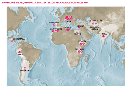 En una carta enviada en diciembre al director general de Bellas Artes y Bienes Culturales, Jesús Prieto, el catedrático de Arqueología, Juan M. Campos, director del proyecto Tamuda en Tetuán (Marruecos), exponía con claridad la gravedad de una decisión como la tomada por Hacienda: “Conoce sobradamente el programa de Proyectos Arqueológicos en el Exterior aporta a nuestra nación una alta visibilidad en el exterior, fomentando las relaciones bilaterales con los países beneficiarios de los proyectos que en algunos casos se trata de estados en vías de desarrollo, con el consiguiente beneficio que conlleva en el desarrollo local (...) De otro lado es preciso hacer alusión al alto rendimiento científico que estos proyectos tienen en el ámbito internacional con el consiguiente prestigio que ello aporta a nuestra nación. Un parón del programa, aunque sea provisional, resultaría tremendamente pernicioso pues a veces a las relaciones bilaterales y el ritmo de los trabajos y de las relaciones no son del todo fáciles de recuperar”.