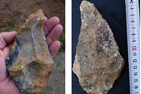 En la capa de zahorra ha aparecido un hallazgo sorprendente: una posible bifaz de sílex tallada perteneciente al Paleolítico Medio o Superior, utilizada por el hombre de Neandertal (150.000 al 30.000 a.C.).