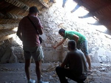 Vecinos de Overa hallan joyas arqueológicas en el 'techo' de la ermita de Santa Bárbara (Almería). Mientras se arregla la maltrecha cubierta de la iglesia, se descubren bellos e interesantes murales de la época en la que era una mezquita.