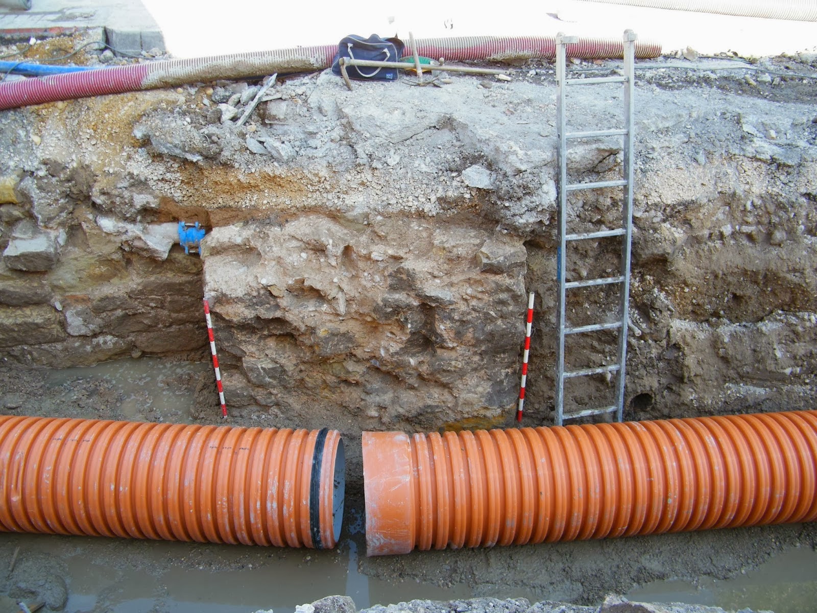 En cualquier caso, tal y como se refleja en el informe arqueológico, se ha podido documentar la localización de un gran muro que además presenta un tramo en esquina. Se trata, según se explica en la documentación, de un muro que tiene dos trazados, uno que iría en paralelo al río Ebro siguiendo lo que es hoy la calle Independencia hasta el puente de Carlos III; y otro trazado que iría hacia la calle Tenerías.