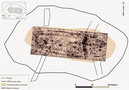 Con 14 metros de ancho, el edificio tenía muros dobles y cuatro entradas a las que se accedía por rampas. En el centro se han detectado vestigios de una enorme chimenea. Con el georradar se demuestra que esta técnica sirve a la ciencia arqueológica para comenzar la investigación en un yacimiento de manera no invasiva.