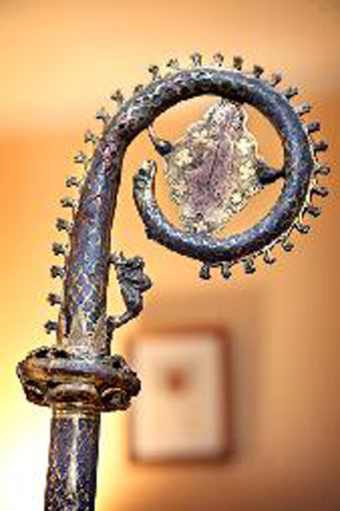 El obispo de Ciudad Rodrigo, Atilano Rodríguez, presentó esta mañana el hallazgo de un báculo del siglo XIII en la Catedral de Santa María de esta localidad salmantina, que se produjo durante las labores de desmontaje de la muestra ‘kyrios’ de Las Edades del Hombre en el ático del retablo de la Capilla del Sagrario como parte de una imagen de San Blas del siglo XVII.