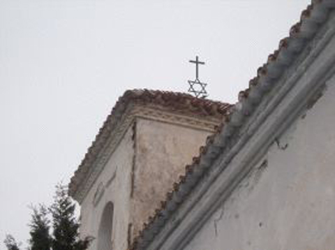 Transformada en iglesia en el siglo XV, en la veleta de la torre se sobreponen los símbolos del judaísmo y el cristianismo