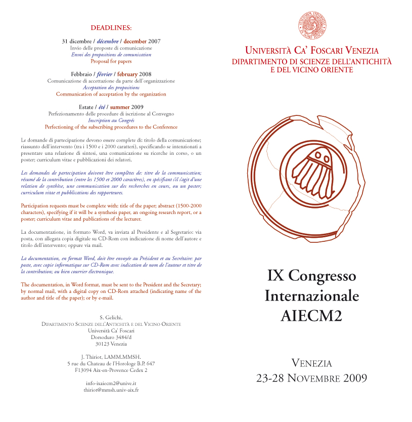 En noviembre de 2009, tendrá lugar en Venecia el IX Congreso Internacional de la AIECM2 (1 Circular)