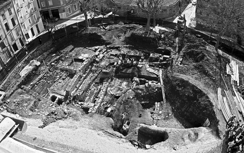 Se ha descubierto, aunque sin terminar de excavar en planta y profundidad, una construcción urbana de carácter monumental que el informe de la intervención arqueológica atribuye a un uso privado.
