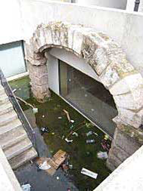 Los restos arqueológicos del siglo XIII de la plaza del Árbol, rodeados de residuos y orines
