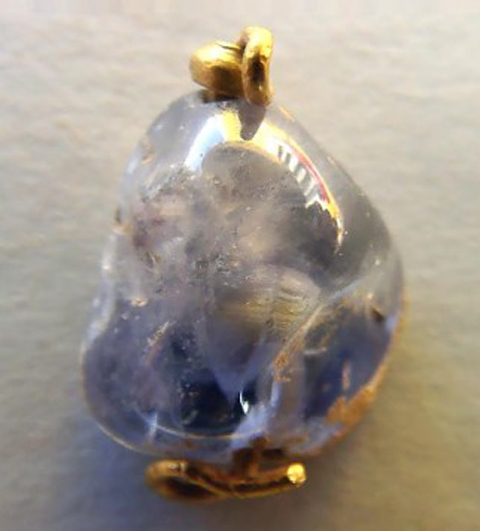 La pieza es indiscutiblemente de la época visigoda. Se trata de un pendeloque, o lo que es lo mismo, una piedra preciosa engarzada con oro. Aunque está por determinar, es más que probable que se trate de un zafiro o cristal de roca que habría pertenecido a un pinjante (joya con plata u oro colgante). Por sus características podría haber formado parte de una corona votiva semejante a las existentes de las monarquías de Suintila (621-631) o Recesvinto (653-672).