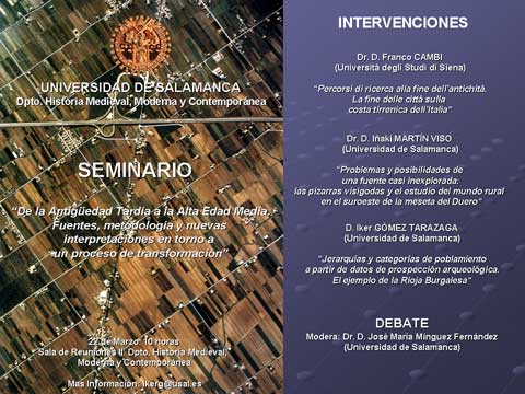 Este seminario está organizado por el Departamento de Historia Medieval, Moderna y Contemporánea de la Universidad de Salamanca y se celebrará en la Sala de Reuniones II de dicho Departamento a las 10:00 h.